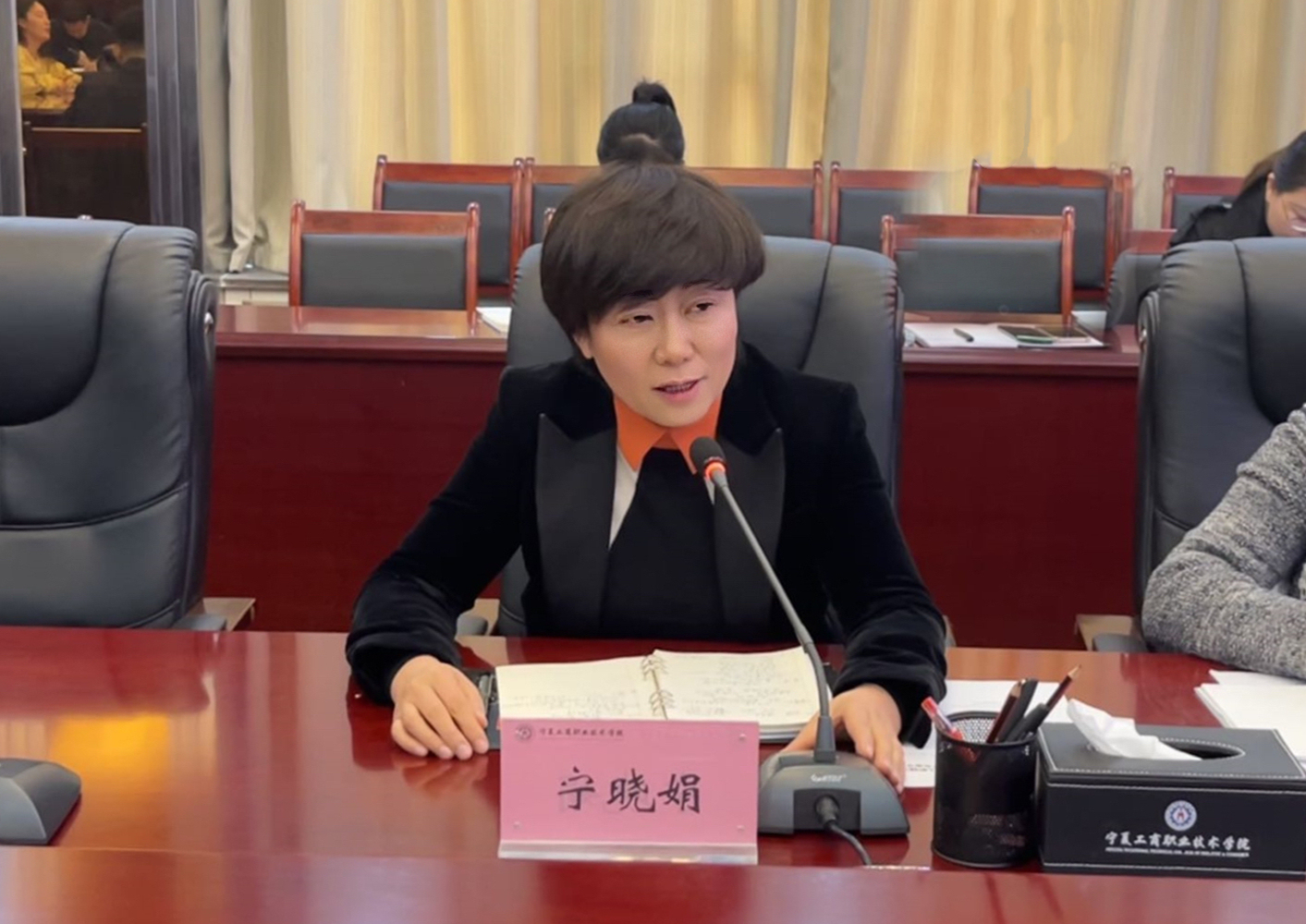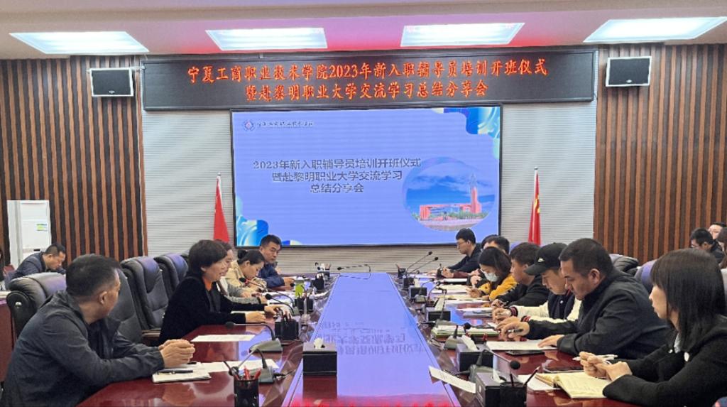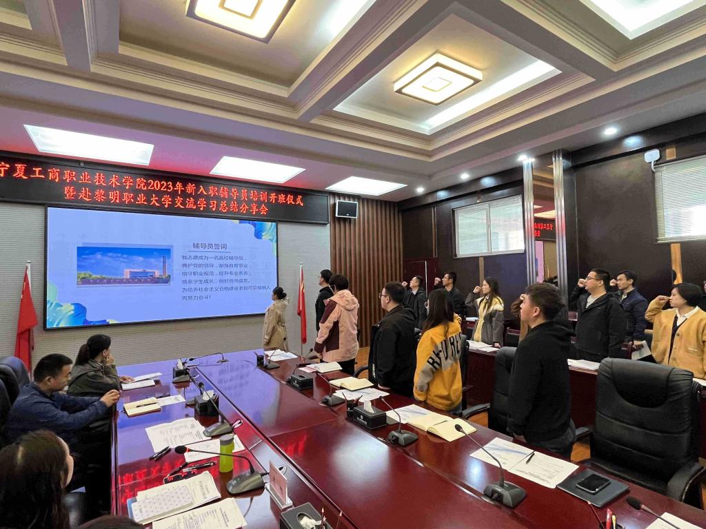 为进一步加强学校辅导员队伍专业化职业化建设,着力提高新入职辅导员业务能力和综合素质,4月11日上午,宁夏工商职业技术学院2023年新入职辅导员培训开班仪式暨赴黎明职业大学交流学习总结分享会在明理楼会议室召开。新入职专兼职辅导员、各二级学院专职副书记、学办主任、学工秘书及学生处相关工作人员参会,学生处副处长高旭主持,副校长宁晓娟出席会议。