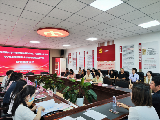 为扎实推动学习贯彻习近平新时代中国特色社会主义思想主题教育走深走实,深入贯彻落实习近平总书记关于铸牢中华民族共同体意识的重要论述,进一步增强思政课教师铸牢中华民族共同体意识的思想自觉和行动自觉,进一步将铸牢中华民族共同体意识贯穿于立德树人全过程。7月21日,宁夏工商职业技术学院马克思主义学院与北方民族大学中华民族共同体学院、马克思主义学院签订合作共建协议,并开展联合共建活动。活动由宁夏工商职业技术学院马克思主义学院党总支书记陈娜主持。北方民族大学中华民族共同体学院党委书记海金宝、马克思主义学院党总支书记李铁莉、院长马惠兰等参加了此次签约仪式。