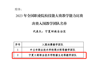 图 宁夏回族自治区决赛入围教学团队名单