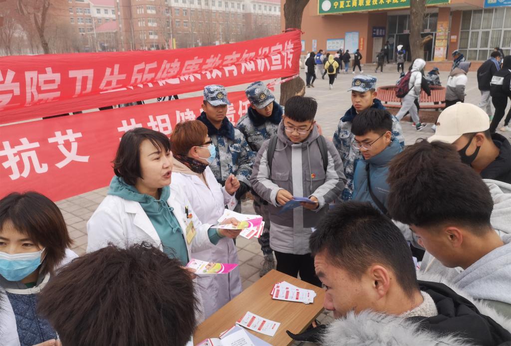 2020年12月1日是第33个“世界艾滋病日”,为了切实加强新时代学校预防艾滋病教育工作,促进青年学生身心健康,后勤处联合西夏区疾控中心、社区医疗服务站于12月1日中午在学校第一食堂广场,共同举办了主题为“携手防疫抗艾 共担健康责任”的世界艾滋病日宣传教育活动。
