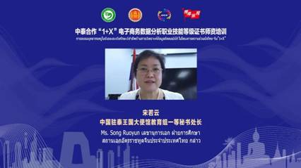 泰国教育部职业教育委员会副秘书长孟佟•帕素万在致辞中表示,泰国职教委根据泰国教育部的职教升级政策,依托与中国官方和民间的多元密切合作,紧扣市场需求,通过职业教育发挥语言、技术与科技的力量。“1+X”电子商务数据分析职业技能等级证书师资培训能够帮助教师发展职业特长技能,促进数字教学平台搭建。泰国职教委将跟合作单位密切合作,共同推进职业教育发展。