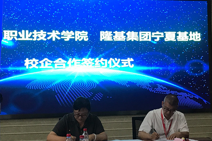 2020年7月8日下午,宁夏工商职业技术学院与隆基硅集团宁夏基地校企合作签约授牌仪式在银川隆基硅材料有限公司会议室举行,仪式由副校长原秦英主持,校长关世春出席仪式并讲话。