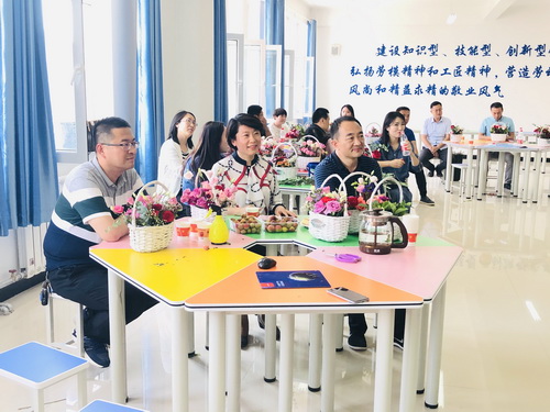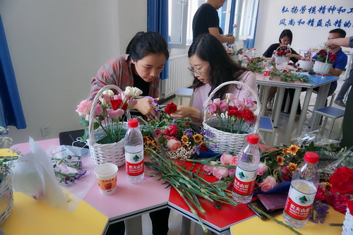本次活动由“解花语人”、“修花育人”等环节组成,在现场花艺师的指导下,各位老师积极进行插花活动,在扦插花束中感悟育花、育人之美。插花活动结束后,在“桃李余香”环节中,大家将插花与自己实际的育人管理工作相结合,分享了自己插花的寓意与体会,现场笑声阵阵,掌声不断。