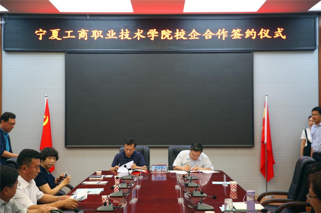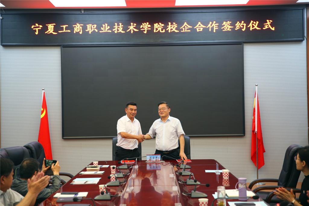 最后,学校与宁夏格瑞精细化工有限公司、贝利特化学股份有限公司签订校企合作协议,就成立“宁夏工商职业技术学院格瑞产业学院”、“宁夏工商职业技术学院贝利特产业学院”,以及在学校挂牌设立“宁夏格瑞精细化工有限公司人才培养基地”、“宁夏贝利特化学股份有限公司人才培养基地”等达成高度共识。