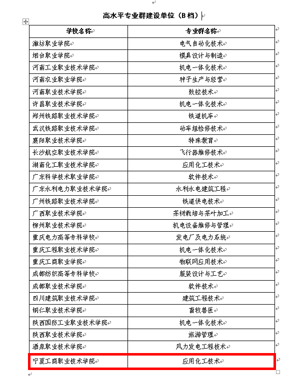 根据《教育部办公厅财政部办公厅关于开展中国特色高水平高职学校和专业建设计划项目申报书的通知》和《教育部财政部关于印发<中国特色高水平高职学校和专业建设计划项目遴选管理办法(试行)>的通知》要求,能源化工学院积极谋划、主动作为,聚焦宁东能源化工基地产业布局对人才的需求和未来产业发展趋势,充分挖掘能源化工学院专业建设特色和优势,积极推进应用化工技术专业群建设项目申报工作。