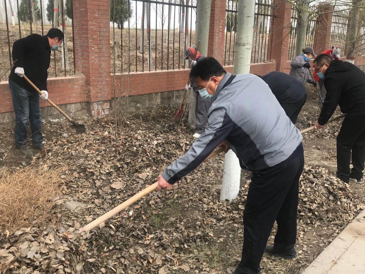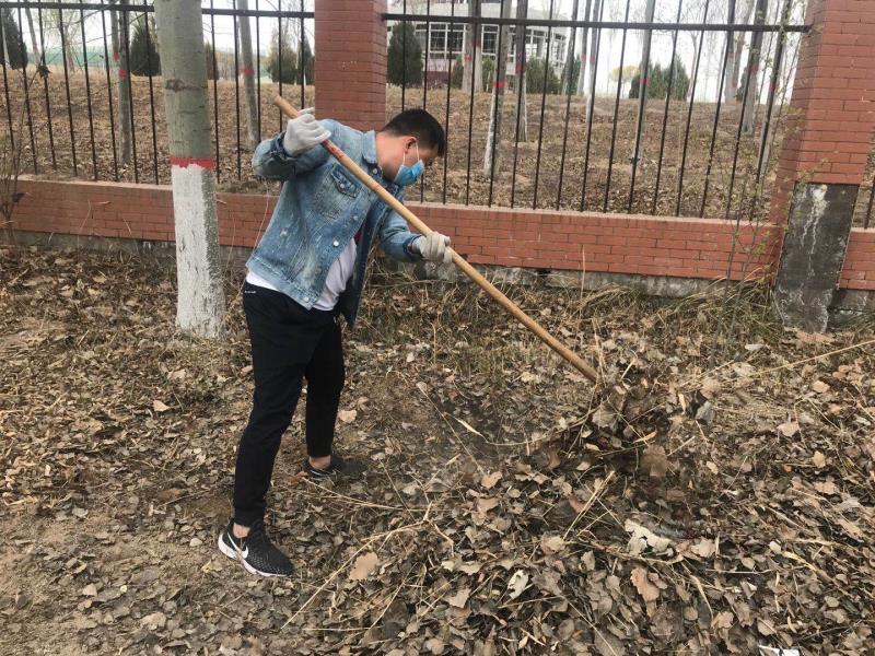 后勤处负责校园卫生保洁管理工作的安慧军老师向全体人员传达了活动要求,明确了职责分工。在劳动过程中,大家积极参与,相互配合,纷纷用钉耙、铁锹等工具对绿化带的树枝、杂草和尘土进行了清理,用扫帚等工具将枯枝烂叶和垃圾等清扫干净,随后物业公司人员及时对垃圾进行了集中清除并对清扫区域喷洒消毒。经过近一个多小时的劳动,整个西围墙边绿化带变得干净整洁,实训车间西侧外围环境焕然一新。