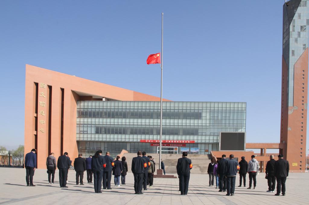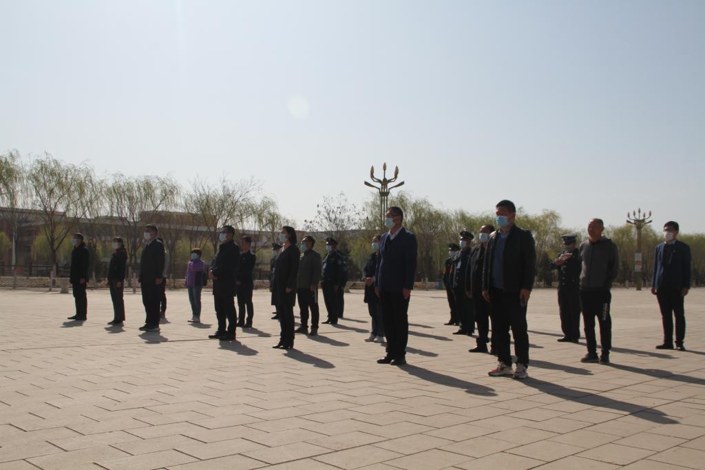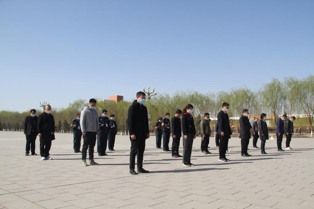 为表达对抗击新冠肺炎斗争中牺牲烈士和逝世同胞深深的哀悼之情,4月4日上午10点,校长关世春,副校长宁晓娟带领全体值班教职工在学校图文广场举行了哀悼活动。