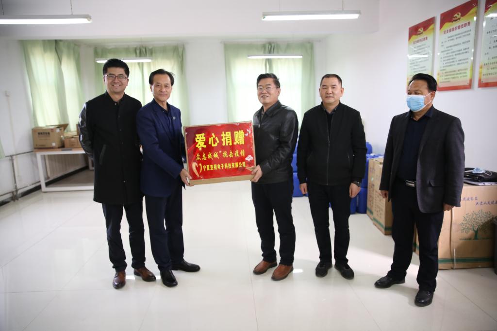 3月18日上午,宁夏亚视电子科技有限公司总经理关静一行2人专程来到学校,向我校捐赠2000只医用口罩。校长关世春、后勤处相关负责人参加了捐赠仪式。