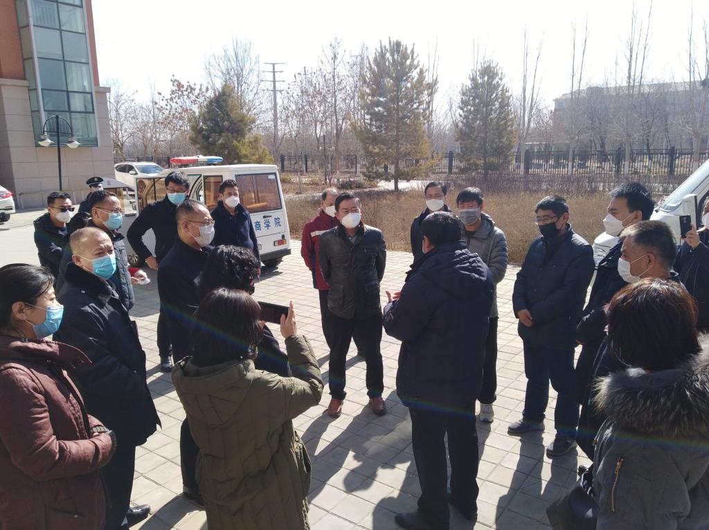 2月22日中午,银川市卫健委、西夏区疾控中心、自治区教育厅疫情防控工作组一行来到学校餐饮实训基地,调研指导学校建设自治区教育系统疫情防控集中隔离场所的工作情况,全体在家校领导陪同调研。