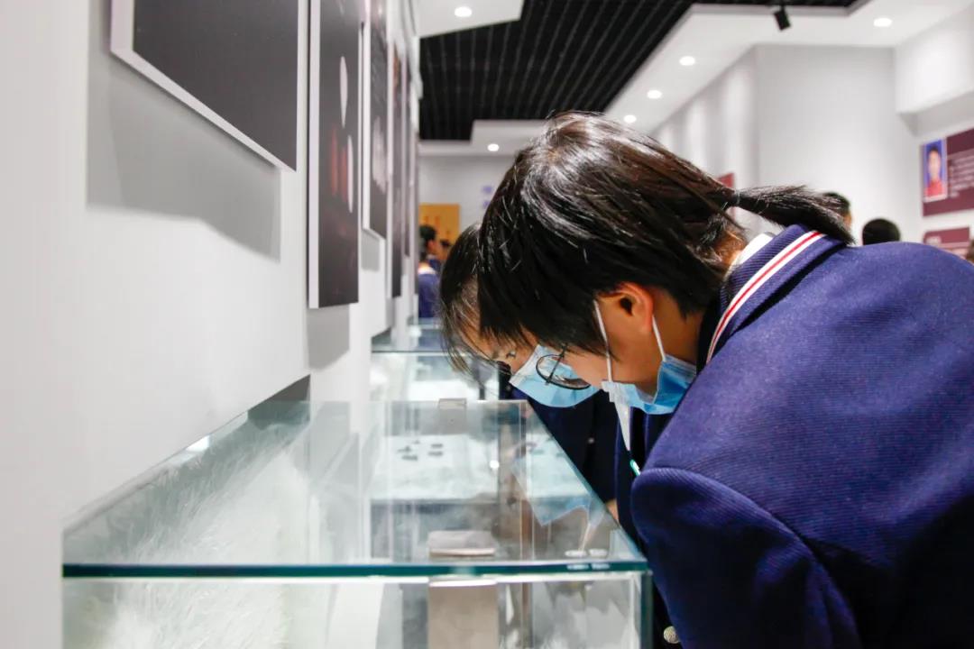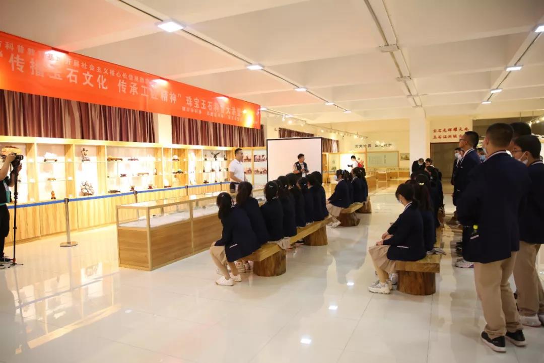 学生在科普教育基地、宝玉石标本教学实训室认真观看宝玉石标本