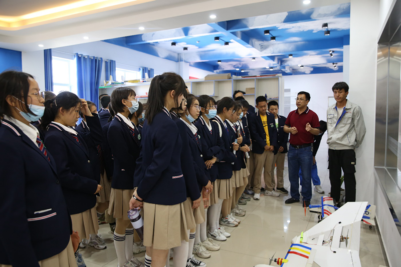 无人机专业教师现场向学生们讲解各种类型的无人机