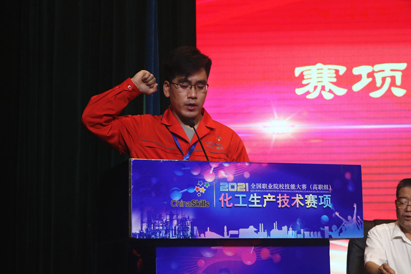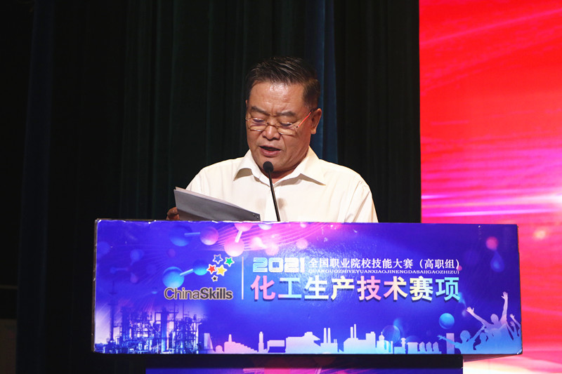 全国石油和化工职业教育教学指导委员会主任、化工生产技术赛项执委会副主任任耀生宣布赛项正式开赛。