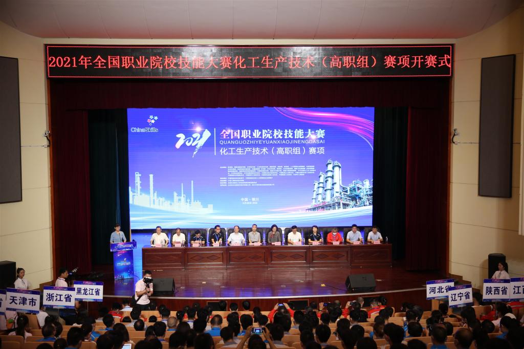 大赛点亮人生,技能改变命运。6月28日,2021年全国职业院校技能大赛化工生产技术(高职组)赛项开赛式在宁夏工商职业技术学院举行。化工生产技术赛项执委会副主任、全国石油和化工职业教育教学指导委员会主任任耀生,化工生产技术赛项执委会副主任、中国化工教育协会副会长于红军,宁夏回族自治区教育工委副书记、教育厅党组成员李玮,宁夏宁东能源化工基地管委会党工委委员、管委会副主任刘红宁,化工生产技术赛项专家组组长、徐州工业职业技术学院原党委书记周立雪,化工生产技术赛项监督仲裁长、开封大学副校长赵辉,教育部职业教育与成人教育司干部唐振华,化工生产技术赛项裁判长、江西省化学工业学校教授梅鑫东,自治区教育厅职业教育与成人教育处处长王玉林,宁夏宁东能源化工基地管委会人力资源局副局长杜宏明,宁夏工商职业技术学院党委书记陈晓军,宁夏工商职业技术学院院长关世春和来自全国26个省、市、区的26所职业院校参赛队领队、指导教师、参赛选手以及新闻媒体代表等参加了开赛式。宁夏工商职业技术学院副院长宋莹主持开赛式。
