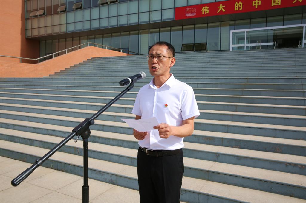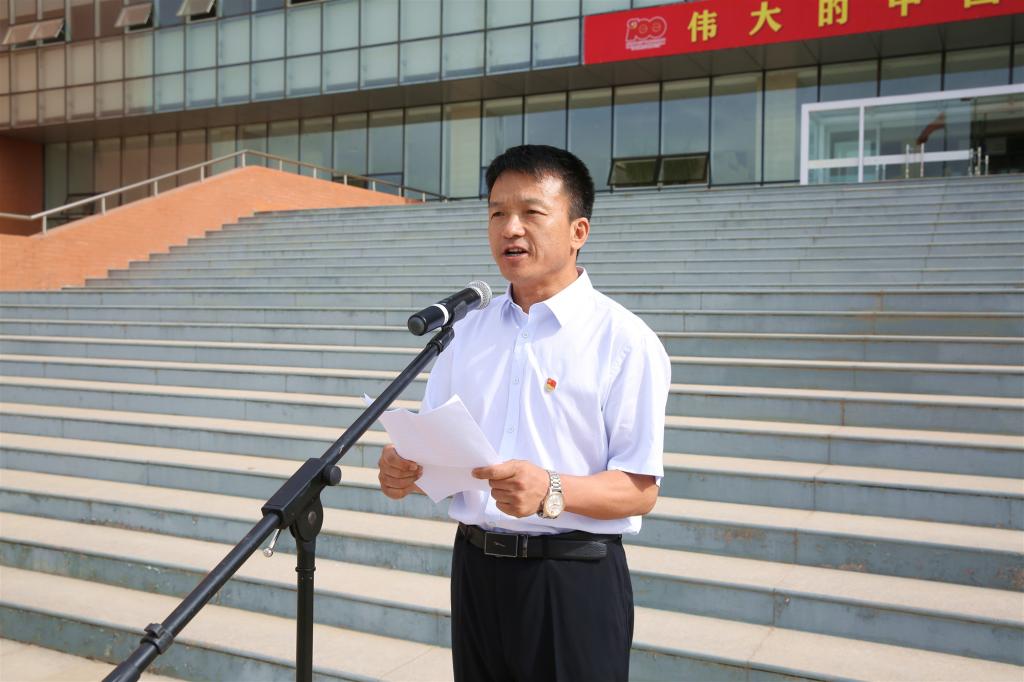6月30日,学校举行庆祝中国共产党成立100周年升国旗仪式,万名师生在鲜艳的五星红旗下共同聆听了一堂《赓续红色基因,答好时代考卷》的思政课。升旗仪式由党委副书记宛国成主持,全体党委班子成员、全体师生参加了升旗仪式。