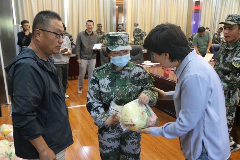 秋空明月悬,光彩露沾湿,正值中秋佳节之际,为弘扬中华优秀传统文化,使奋斗在军训一线的师生、远离家乡在外求学的同学,特别是少数民族学生感受到学校的人文关怀和真挚祝福。9月21日上午,学校副校长宁晓娟、学生处处长姚鹏、党政办公室副主任李强、申抒然、公寓管理部主任鲍唯等一行,赴军训场地、士官大队,代表学校向全体军训教官、士官生送达了节日的慰问,并在五号楼二楼会议召开少数民族学生座谈会。香甜的月饼、新鲜的水果,一句句关怀使这个特殊的节日更添温暖。