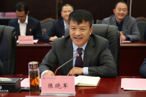 会上,陈晓军首先致欢迎词,他代表学校党委对王松柏一行表示热烈的欢迎。他讲到,7月26日由他带队一行17人赴黎明职业大学考察交流,深入学习了黎明职业大学在政治建设、双高建设、内涵建设、改革创新、责任体系建设等方面的宝贵发展经验和先进发展理念,受益颇多。本次两校的合作交流和相关协议的签订,是两校共同开启新征程、奋进新时代、贡献新发展的重要行动,昭示着两校资源共享、特色互融,同舟共济、共同发展的美好愿景必将实现。