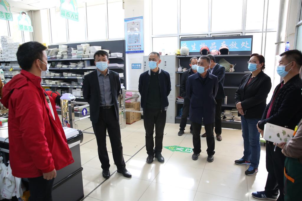 在学校超市,校领导详细询问了超市各类物资的储备供应情况和商品价格,要求经营业主一定要履行好社会责任,保证供给充足、价格稳定,确保师生基本生活物资不脱销、不断档、不涨价。要继续加强超市日常内部管理,严格落实疫情防控措施,认真做好规范经营、消毒清洁等工作。