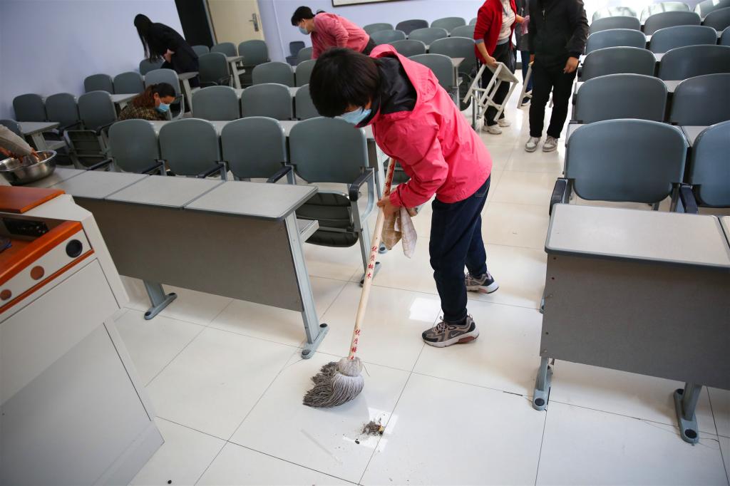 为建设美丽校园,营造干净整洁的学习生活环境。11月4日下午,学校党委书记陈晓军、副校长宋莹、宁晓娟带领学生处党支部、教务处、科研处联合党支部、旅游管理学院党总支等600余名师生,对学校公共教学楼的教室进行了认真清扫。