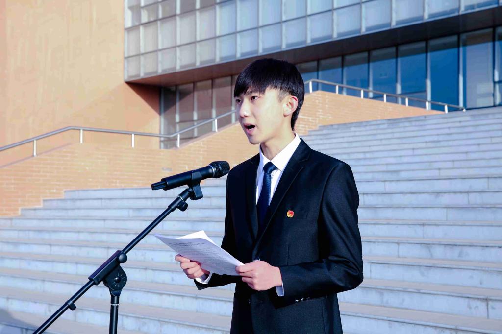 机械工程学院薛汉林作为学生代表向祖国和学校深情告白。他讲到,作为新时代的青年,生逢伟大时代,倍感荣幸和自豪,我们更应该坚守理想,担当使命,践行“请党放心,强国有我”的铮铮誓言。
