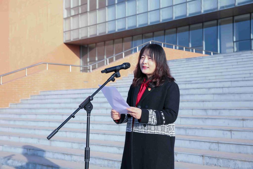 马克思主义学院党总支书记陈娜老师以《奋进新时代争做圆梦人》为题,激励广大师生不负韶华,不负梦想,扛起新时代赋予我们的新使命,真正成为中华民族伟大复兴中国梦的圆梦人。