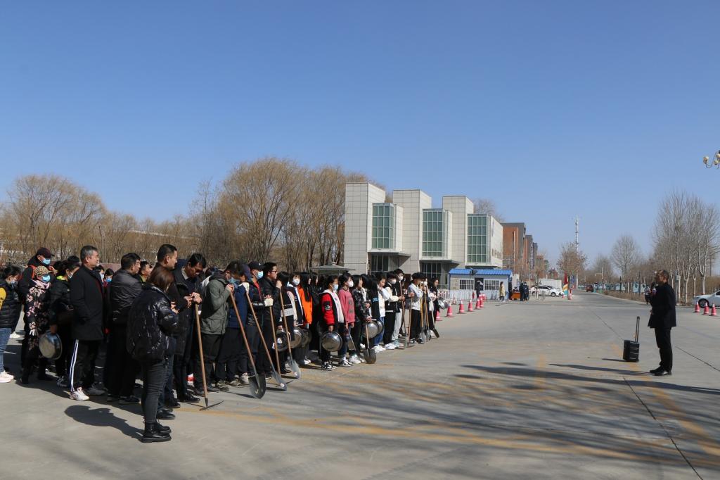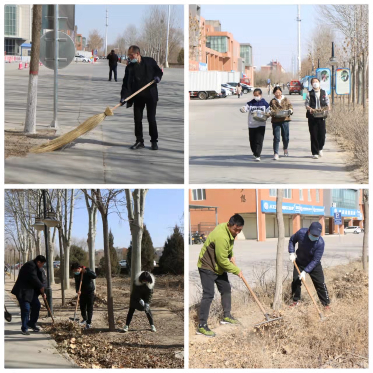 劳动分两队进行,沿学校南门外东西创业街,清扫落叶、铲除荒草、捡拾石块,你用耙子我用锹,盆盆石块拣尽。通过劳动,道路及两侧卫生整洁一新,师生脸上洋溢着劳动快乐。春风徐来、青春作伴,构成了春日里一道靓丽风景。