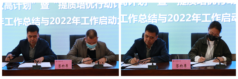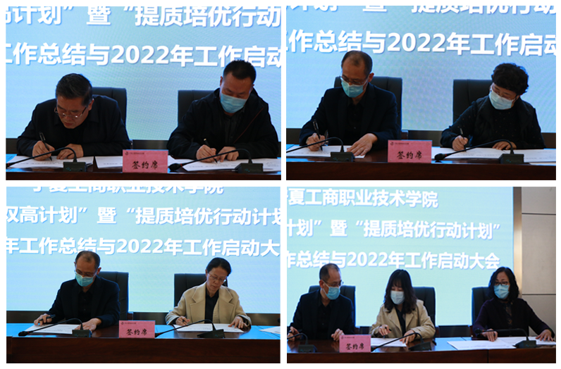 随后,各项目分管校领导分别与统筹部门负责人共同签订了2022年度国家“双高计划”建设任务书、国家及自治区“提质培优行动计划”任务书、自治区“双高计划”专业群建设任务书。