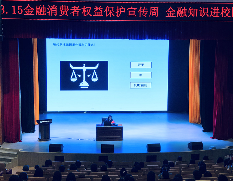 3月15日下午,由学校团委主办的2022年度“金融知识”进校园专题讲座在剧场举行。校团委特邀请黄河银行西夏区支行携手走进校园,联合开展“大学生维权”系列活动,200余名学生代表聆听了此次讲座。