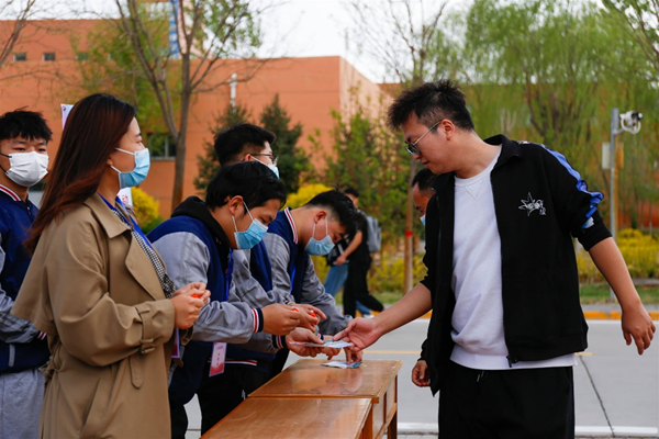 此次活动精心设计了卡片,沿途设置了打卡点、医疗点、取水点,教职工每到一处,志愿者在卡片上盖上鲜红的“加油”、“真棒”、“一级棒”、“合格”等印章。