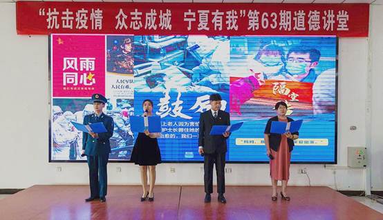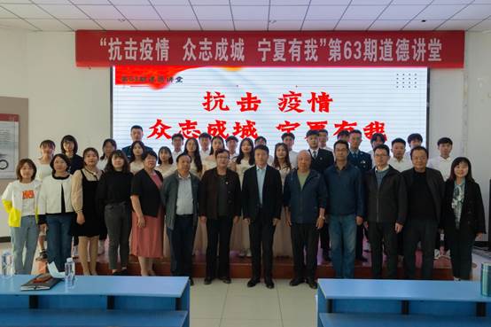为推进学校师生思想道德建设,积极引导广大师生树立良好的道德观念,4月28日,学校第63期道德讲堂在清风园一楼成功举办。本期道德讲堂主题为“抗击疫情 众志成城 宁夏有我”,由电气与控制工程学院党总支承办,招生与就业指导处、科研处、创新创业学院协办,共200名师生参加。