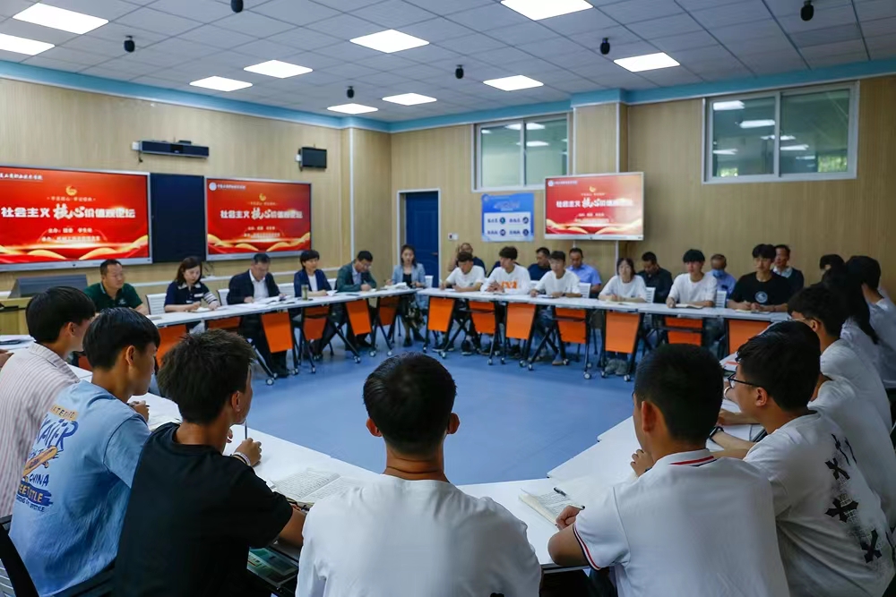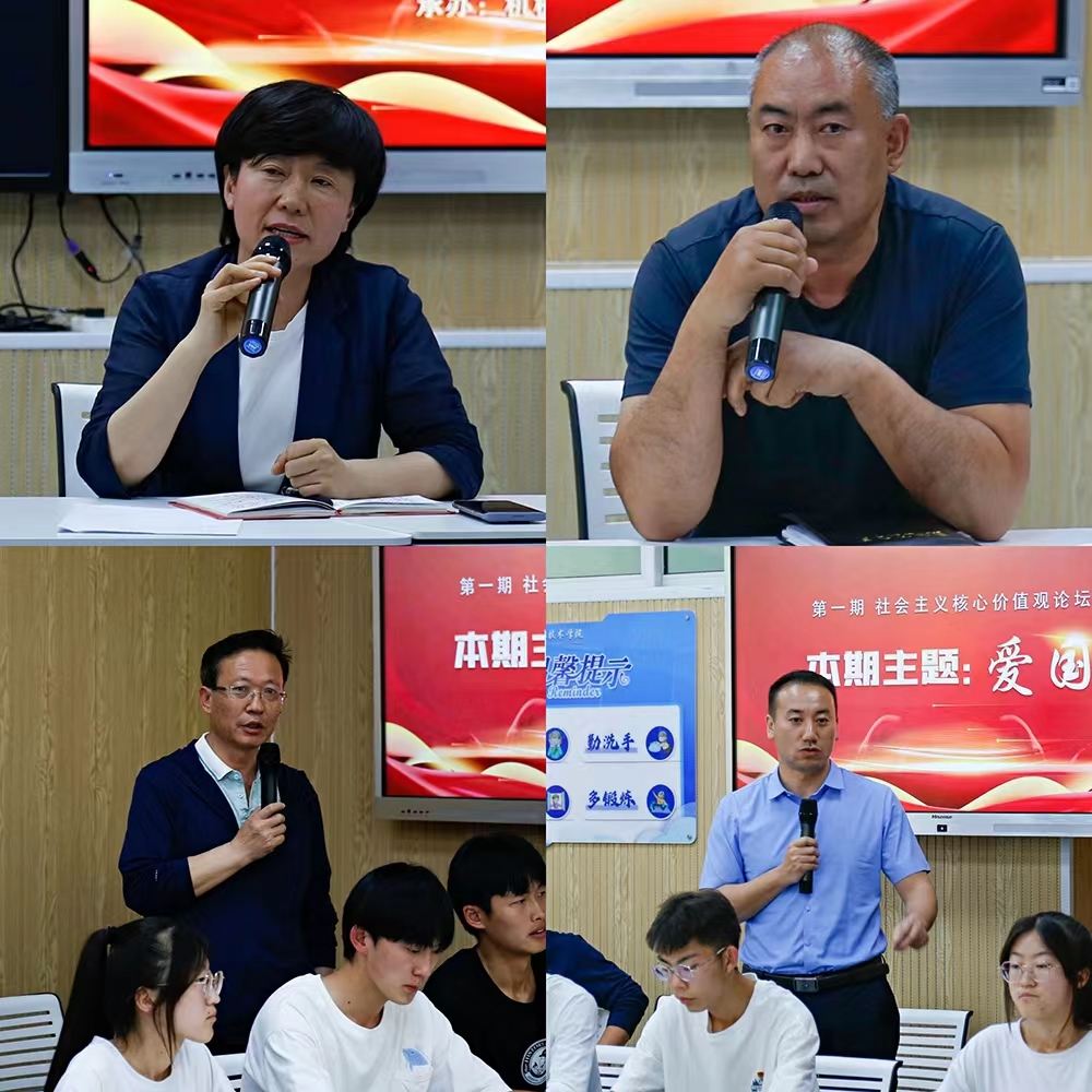副校长宁晓娟、机械工程学院党总支书记庞鸿斌、人文教育学院党总支书记强学民、商贸学院专职党总支副书记张兴旺和同学互动发言时,谈到作为新时代的大学生要坚决拥护中国共产党的领导,树立坚定的爱国主义信念,听党话、跟党走,不断奉献祖国、奉献人民,履行爱国义务,做一名忠诚的爱国者,让爱国主义的伟大旗帜始终在心中高高飘扬。