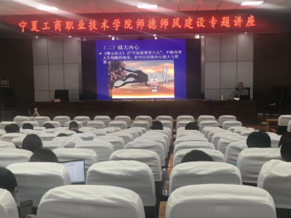 为全面落实《关于完善高校教师思想政治和师德师风建设工作体制机制的指导意见》和《教育部关于在教育系统开展师德专题教育的通知》等最新文件精神,以师德师风为教师评价的第一标准,助力教师思想政治和师德师风常态化建设。6月21日下午,宁夏工商职业技术学院师德师风建设专题讲座在清风园2楼报告厅顺利开展,本次讲座邀请到了宁夏工商职业技术学院特聘教授、宁夏大学马克思主义学院教授、博士生导师俞世伟,马克思主义学院全体教师和来自八个二级学院的教师代表参加了讲座。讲座由马克思主义学院副院长吴晓芹主持。