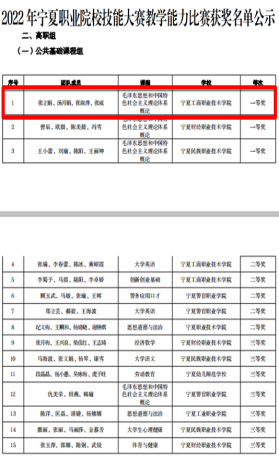 近日,自治区教育厅公布了2022年全区职业院校教学能力大赛比赛获奖名单。我校马克思主义学院选送的《毛泽东思想和中国特色社会主义理论体系概论》课程团队(张立娟、汤月娟、张淑萍、张威)获得了高职组公共基础课程组一等奖的好成绩,并获推荐参加全国职业院校教学能力比赛。这样的佳绩实现了“两个突破”: 突破了马克思主义学院近年来高职思政课参加教学能力大赛没有获得全区一等奖,更没有参加国赛的历史;突破了近年来全区高职思政课程在教学能力大赛中没有参加国赛的历史。