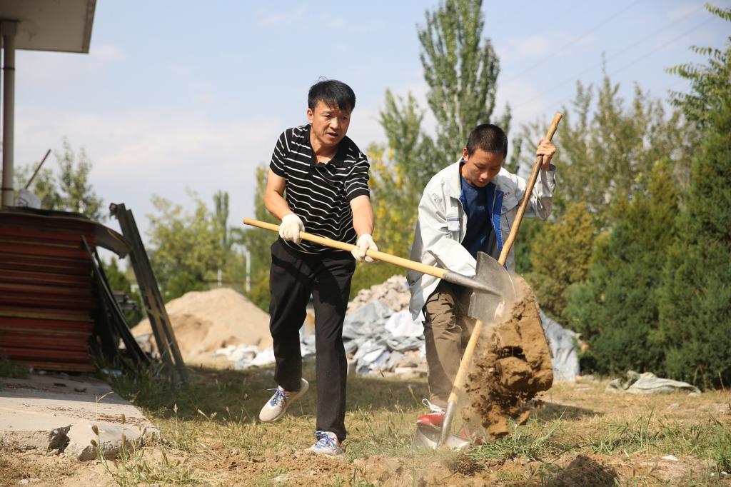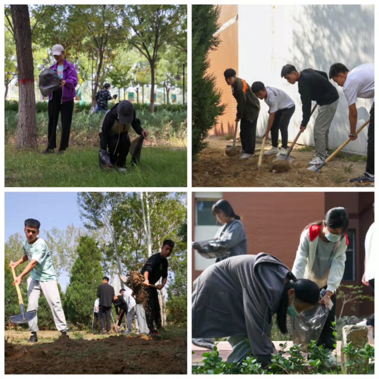 本次劳动区域为校园东侧公寓楼及运动场周围环境卫生整治。分两组进行,男生平整校园东侧运动场旁空置的廊道荒地,捡拾石头、剪运树枝,尤其是翻耙荒地,陈书记偕同学们一起,其乐融融;女生手把垃圾袋,三五成队、携手前进,迅疾将劳动任务圆满完成。