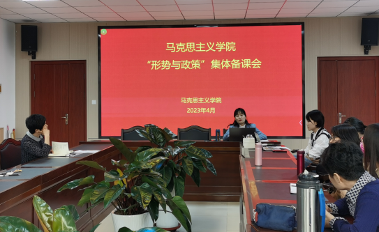 为深入学习贯彻落实党的二十大精神,推动习近平新时代中国特色社会主义思想进教材进课堂进头脑,切实提高新学期《形势与政策》课教学针对性和实效性,最大程度上激发大学生学习积极性和主动性,4月19日下午,马克思主义学院《形势与政策》教研室成功召开本学期集体备课会。教研室主任邓红芳主持会议,马克思主义学院12名教师参会。