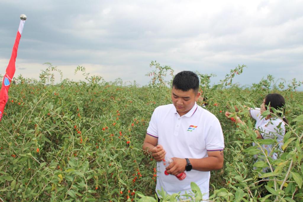 能源化工学院聚青年志愿服务队首先来到中卫市沙坡头区兴仁镇郝集村。在农户马德勇(队员亲切地称其马叔)家里,马叔为志愿服务队队员介绍了目前兴仁枸杞的品种、病虫害防治、采摘方式、烘干设备及工艺以及近几年的收成等。他说未来希望兴仁枸杞能形成自己的品牌效应,借助同学们的“青年之光”广泛宣传。在马叔家种植园,同学们学习采摘技术和要点,减轻农户劳作压力,体会劳动的幸福,并感受务农的艰辛与不易。