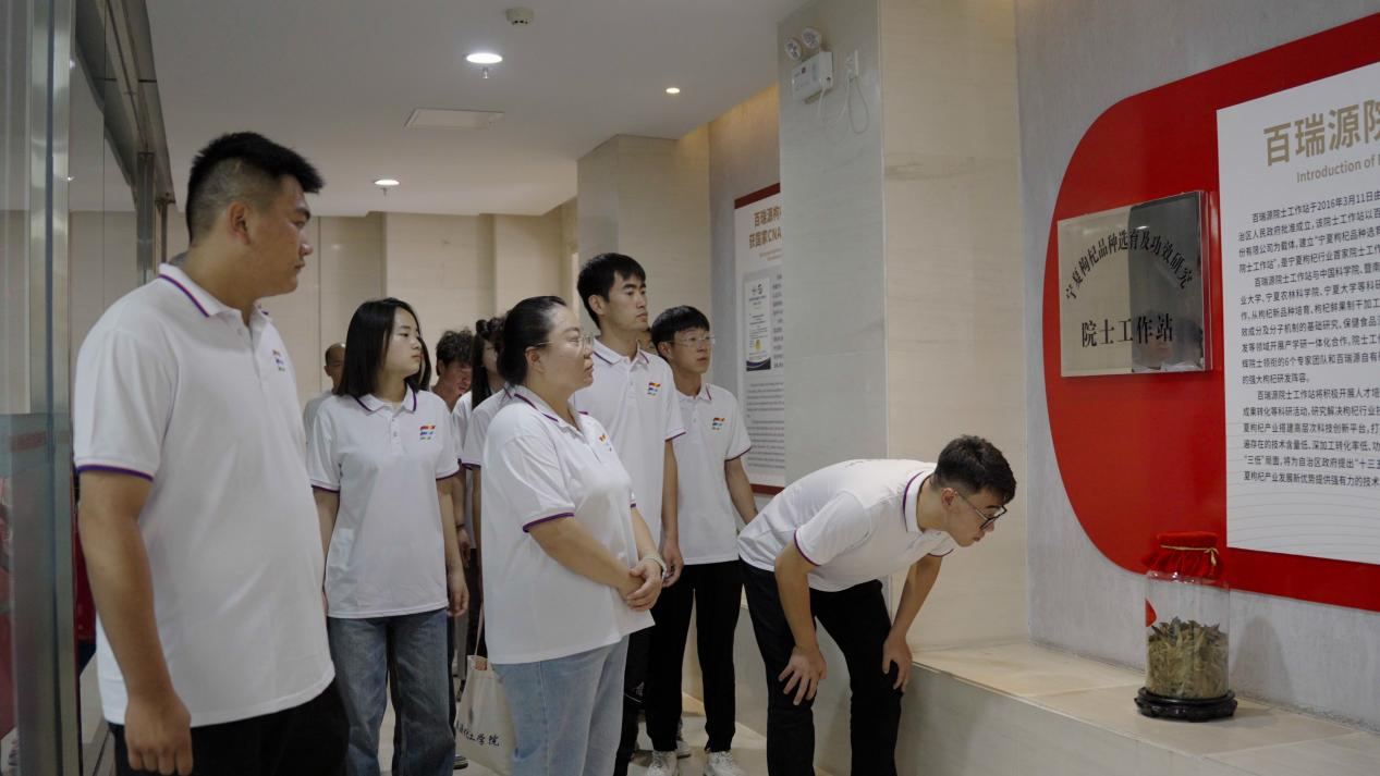 在宁夏农林科学院枸杞研究所(公司),志愿服务队同学们了解到该研究所重点解决枸杞种质资源、品种选育、组培快繁、规范化种植、有效成分评价与质量监控、功能基因定位克隆与成分分析、精深加工技术、农机农艺融合、高附加值新药及系列产品等制约枸杞产业化发展的关键共性问题。走进种植基地,同学们观察了不同的枸杞品种之间根、茎、叶、果的区别,感受到了枸杞研究、迭代种植的不易,使大家体会到只有倍感珍惜当下,潜心学习才能有所收获。
