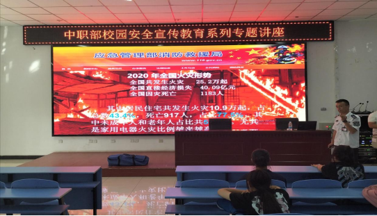 为切实加强防火安全教育宣传,使学生充分认识火灾及其危害性,提高安全防范意识,切实加强消防知识的学习,提高自防自救能力。中职部于6月1日在清风园报告厅开展了消防安全专题教育活动。