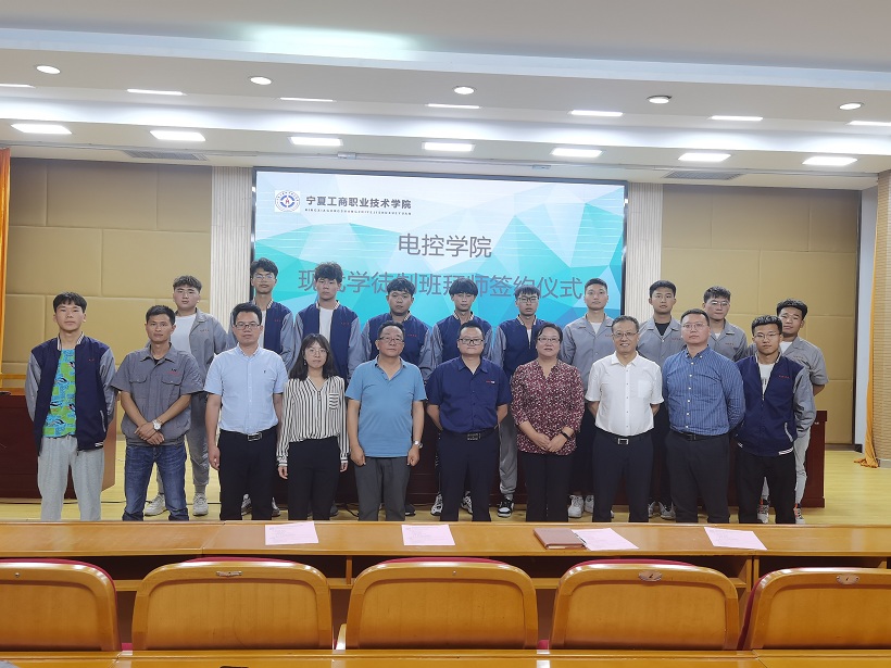 电控学院以此次拜师仪式为契机,加强与宁夏小牛自动化设备有限公司、宁夏隆基光伏科技有限公司的深度合作,共同探索逐步扩大现代学徒制专业领域,建设校企互聘共用的师资队伍,创新人才培养模式,构建校企定向培养、校企共建、多方评价的双主体协同育人长效机制,深化产教融合,推进工学结合、知行合一,精准培养满足市场需求的高素质专业人才。