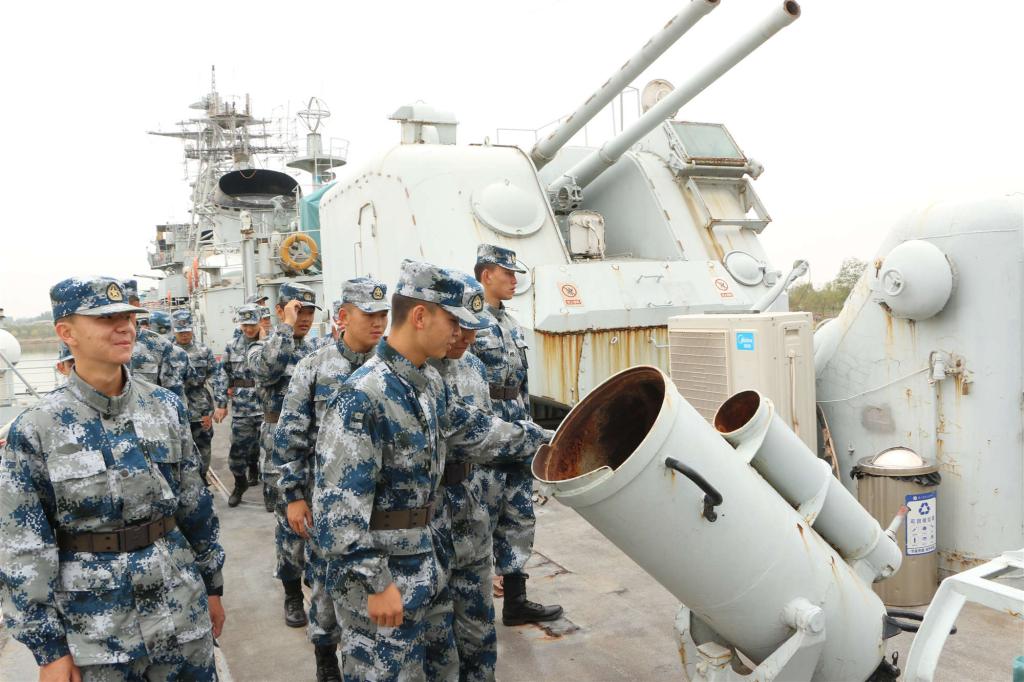 登上银川舰,同学们了解了其研制背景、建造沿革、内外构造及功能,每到一个展室都兴致勃勃地驻足观看,对感兴趣的内容相互探讨交流,深深感受到“爱国必须强军,强军才能国安”的深刻内涵,大家纷纷表示要努力学习,把强军使命放在心里,担在肩上。