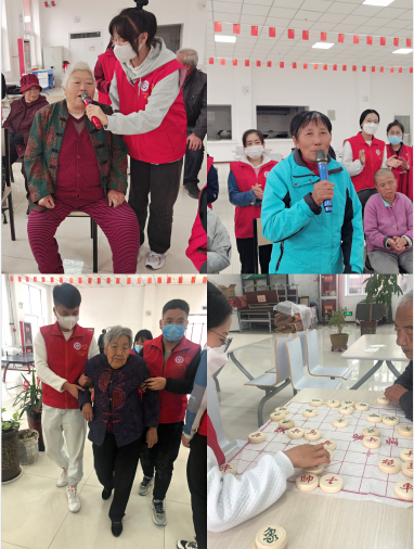 师生为敬老院送去了鸡蛋、牛奶、米面油等慰问品。师生代表演唱了《望月》、《好运来》等歌曲,学生代表表演了国风舞蹈《广寒宫》,最后全场高唱《没有共产党就没有新中国》,为老人送去了节日的祝福。活动中,志愿者们与老人亲切交流,给老人按摩、陪老人下棋,敬老院里充满了欢声笑语,老人们脸上洋溢着幸福的笑容。