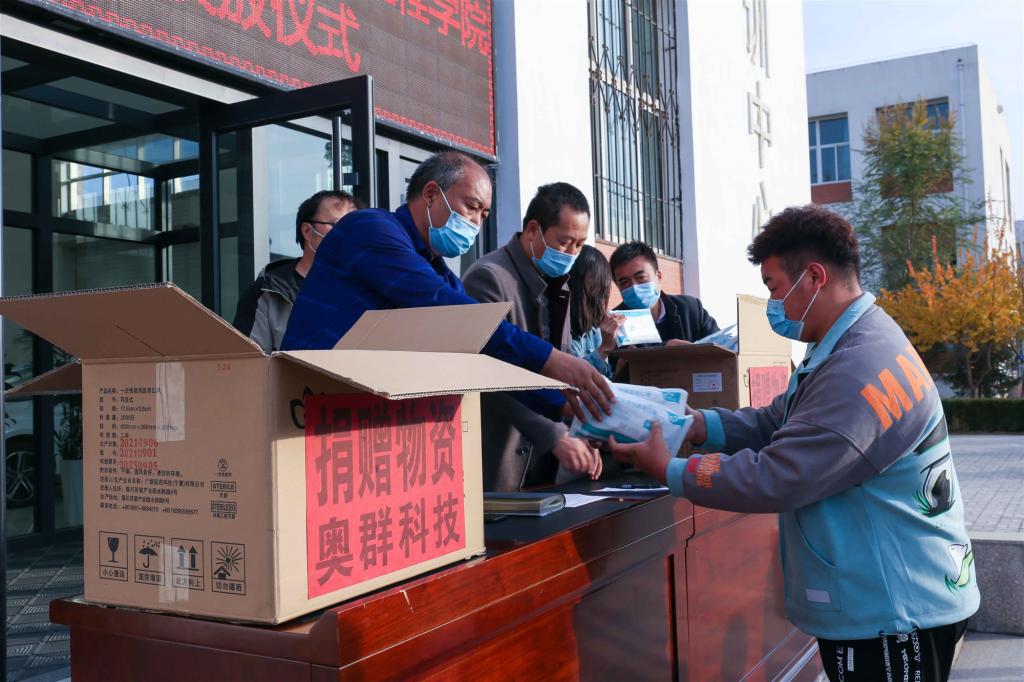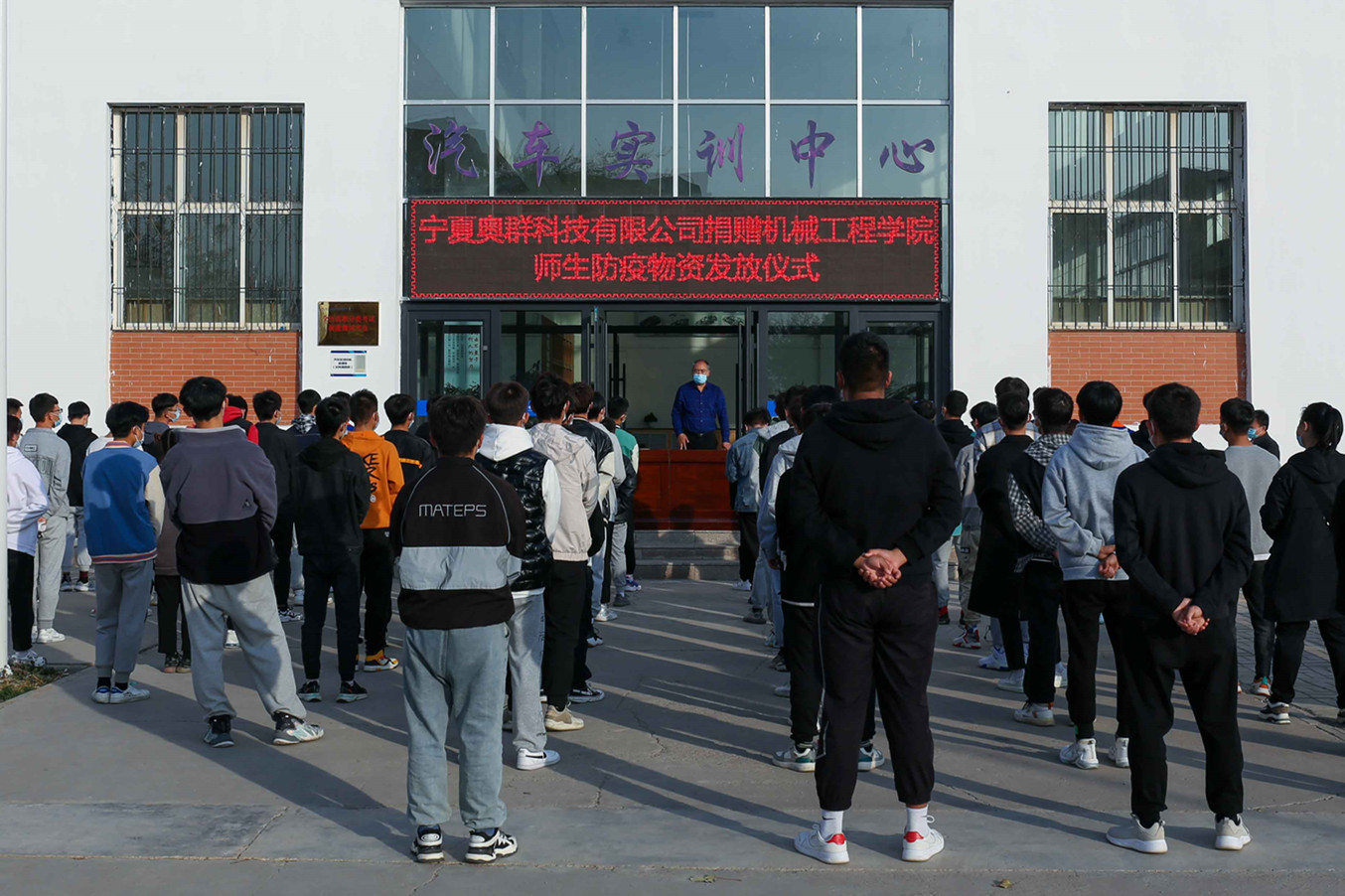 宁夏奥群科技有限公司是机械工程学院的校企合作企业。企业负责人李海波经理心系留守学校的师生,主动联系学院领导,为师生捐赠4000个医用口罩,为学院疫情防控献上一片爱心。