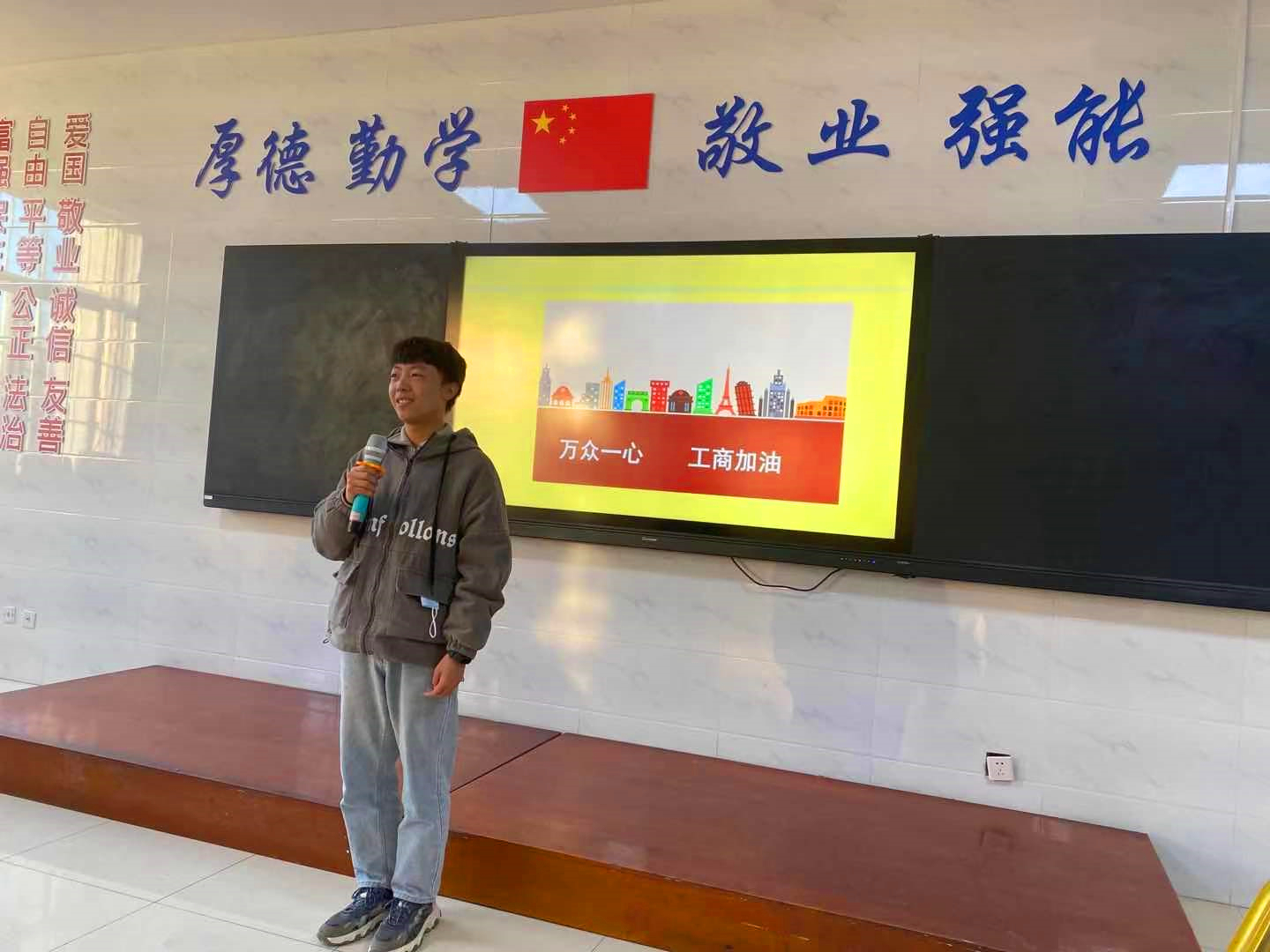 2020级旅游管理2班的万亮同学通过真诚的分享,表达了对学校各项“暖心”活动的所感所悟,他说,“学校发放棉衣的暖心之举,不仅让自己将度过一个‘温暖’的冬天,更是温暖了自己的内心,在今后会正确面对和克服困难,自信自强;刻苦学习,练就过硬本领,励志成才;常怀感恩之心,用实际行动回报家庭、社会和学校。”此外,老师和学生代表通过歌曲演唱、师生同跳《兔子舞》等活动增进了师生交流,更是展现了工商师生同心聚力共抗疫情的精神面貌,增强了打赢疫情防控遭遇战的信心。