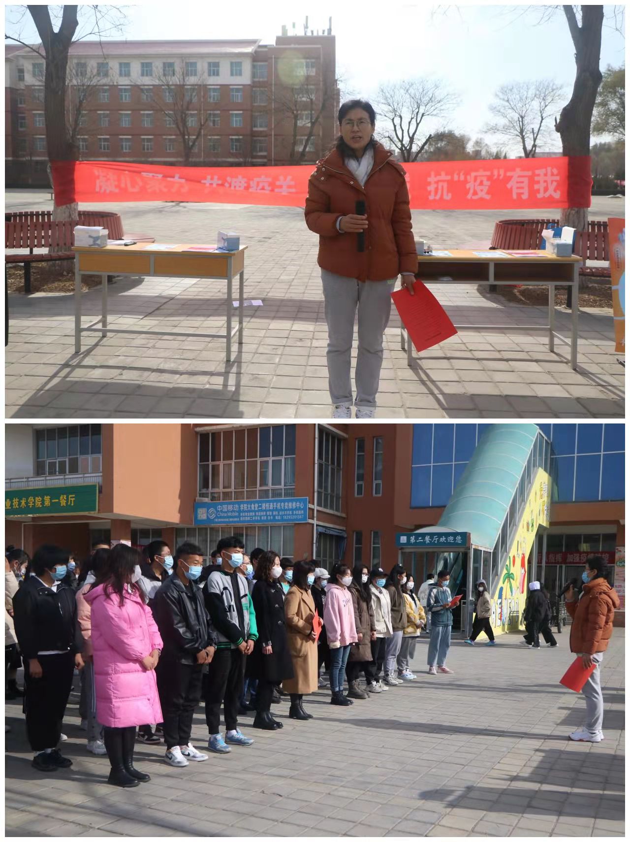 上下同欲者胜,同舟共济者赢。活动伊始,宋莹副校长结合目前全国及宁夏疫情发展态势,向全体师生发出号召:一是希望广大师生们能够继续加强疫情防控知识学习,提高自我保护的意识和能力。二是希望广大师生们要提高警觉性,严格落实疫情防控各项措施。三是希望广大师生们积极配合防疫工作,积极做好健康监测工作。