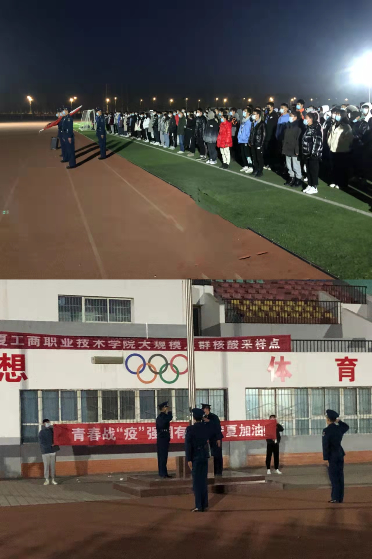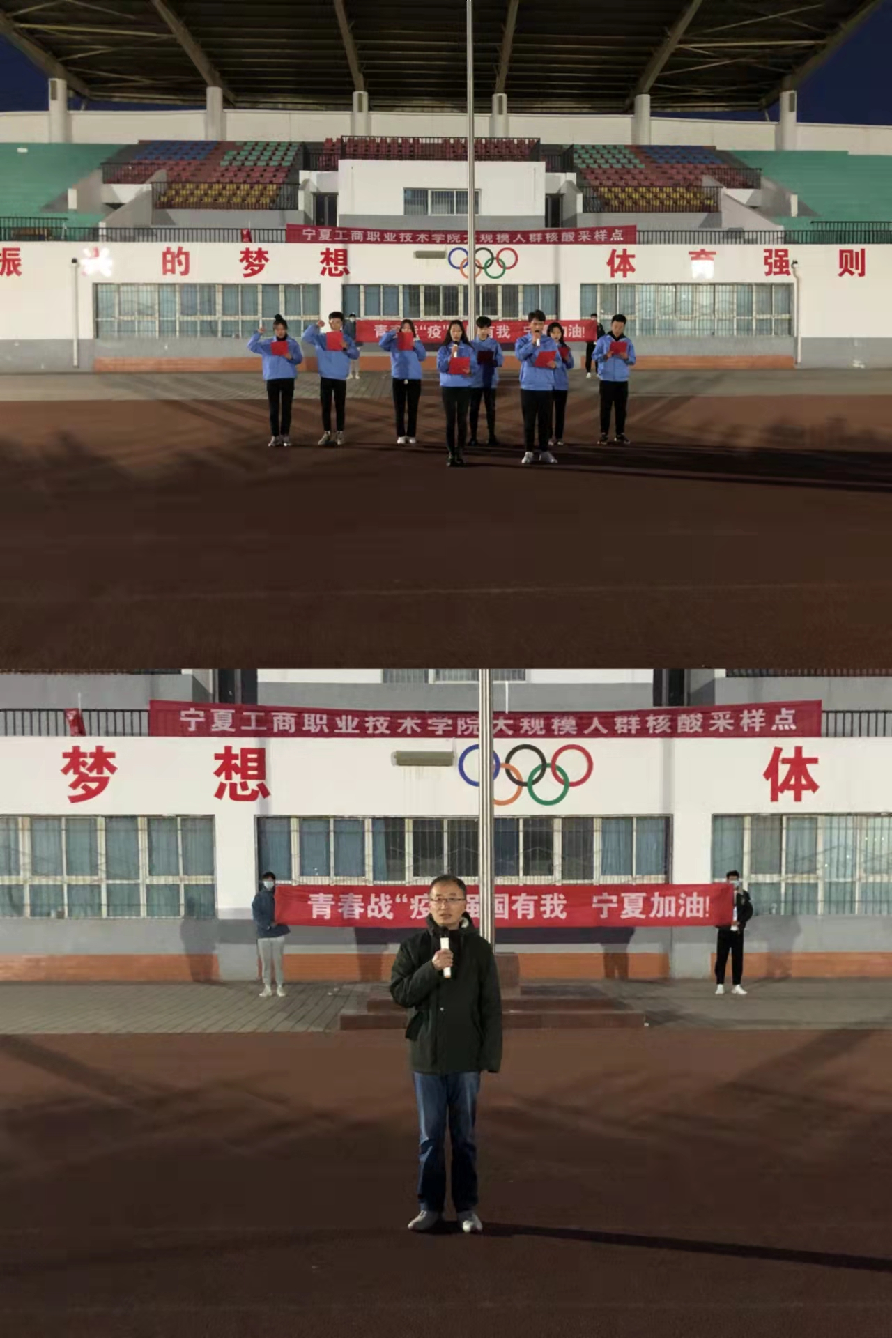 11月15日清晨,能源化工学院团总支在学校大操场举行了以“青春战‘疫’强国有我 宁夏加油”为主题的升旗仪式。学院党总支书记马辉、学办主任何文文、留校辅导员和全体同学参加了升国旗仪式。
