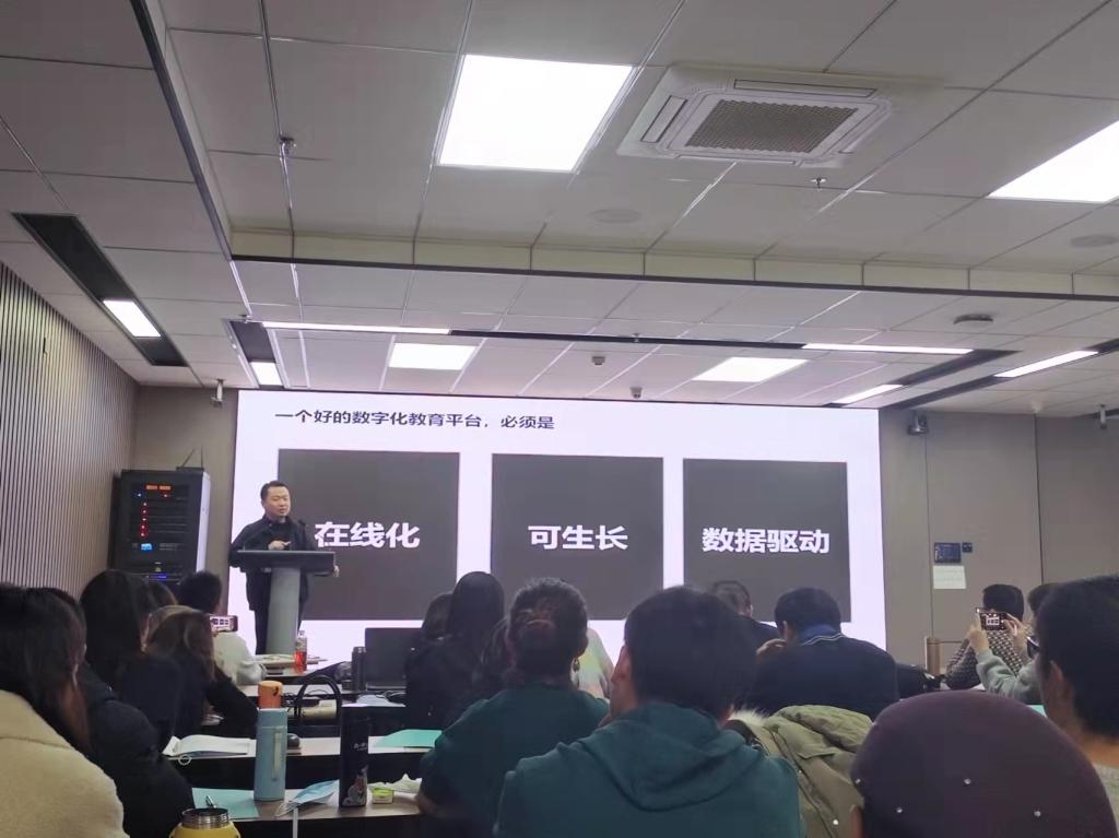 12月10日上午,培训讲师田银龙介绍了职教云平台的建设背景,指出目前各个职业院校信息化发展中存在的诸多痛点,如信息壁垒,数据孤岛,重复建设,资源浪费等等。同时指明了未来职业教育信息化建设的总体思路,他强调现有的数字校园应逐步从以业务应用为中心过渡到以数据推动模式为主的智慧校园。