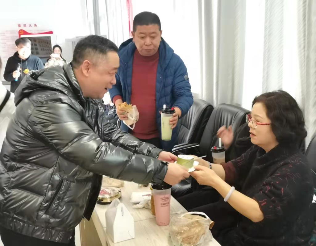 中午12:20-12:50,参与活动的全体老师在学院三楼会议室进行“陪她吃午饭”活动,男教师们为女教师准备了甜点、饮品等简餐,代表党组织为女教师送上节日的祝福。