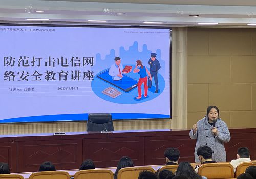 3月4日-7日,学院分四场次对20级、21级学生进行安全教育讲座。通过观看宣传视频、讲解各类电信诈骗典型案例,分析了大学生易被骗的惯用手段和预防电信诈骗的主要方法,警醒学生不贪小便宜,不被虚假广告所迷惑。在日常生活中要学会保护个人资料信息,不随意泄露注册、填写网络账户、银行卡等私人信息。现场与学生签订了《预防电信网络诈骗承诺书》,做到了全员、全覆盖,切实让广大学生对预防诈骗知识入脑入心。