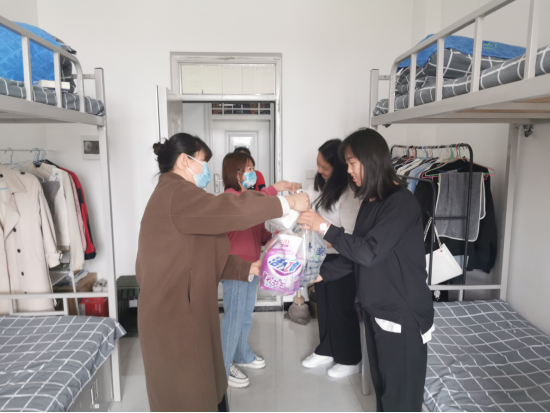 党支部11名党员自发捐献,所得善款购买了此次慰问的物资,慰问物资包括学习用品及日常生活用品等。慰问对象是35名2021级新生,从党支部兼职辅导员所带的班级中遴选。根据学生住宿的楼号,党支部党员分成了3个慰问小组,各组的慰问成员来到学生的宿舍,除了给学生送上慰问物资,还主动和学生谈心交流,了解学生的学习生活家庭状况,为学生解读国家、自治区有关就业创业方面的政策,讲解参加各类创新创业大赛的注意事项,进行职业生涯规划辅导等等。