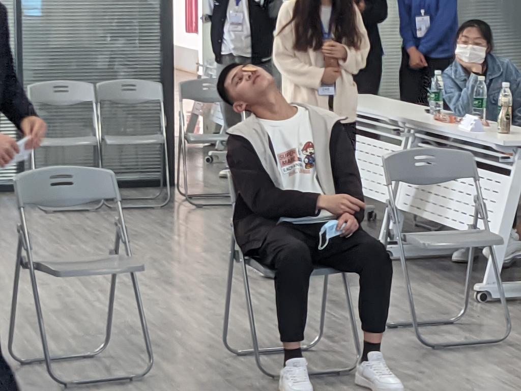 本次活动严格遵循学校疫情防控相关要求,秉持着疫情期间不大规模聚集的原则,采取自愿报名方式,将报名的同学分为7组,每组5人外加老师队伍1组,在欢声笑语中开展了“你演我猜”“吃饼干”“听歌识曲”等3项活动。经过欢快且激烈的角逐,三项游戏都分别选出了第一名的队伍并颁发了奖品。