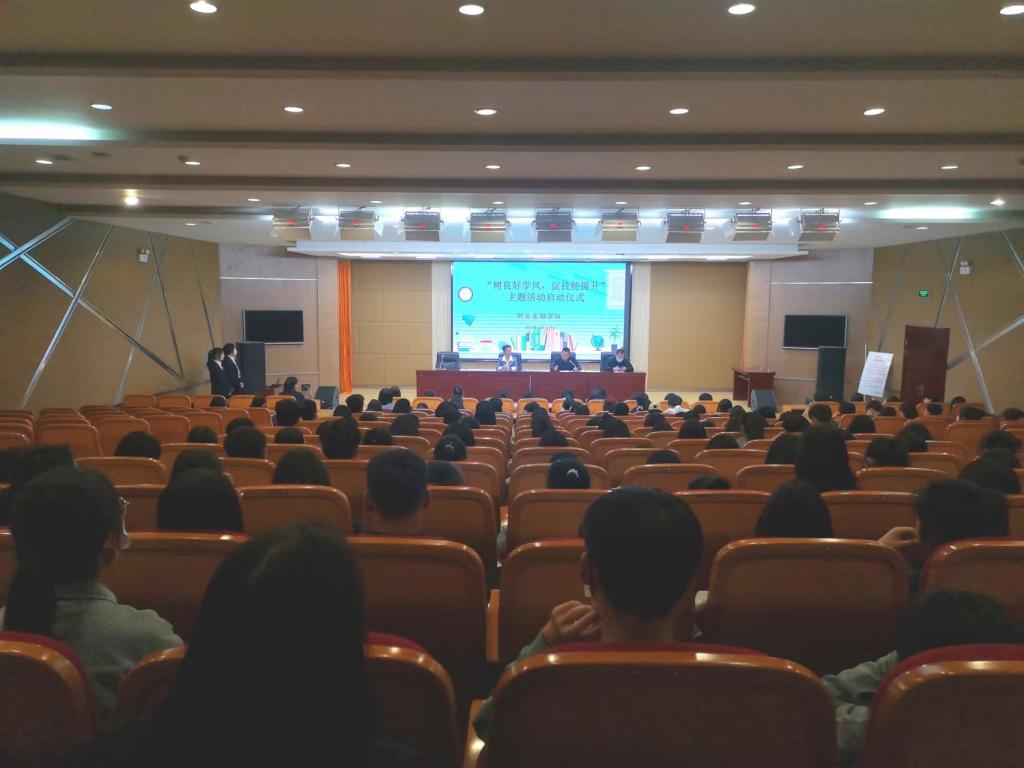 为进一步加强我院学风建设,在全院上下营造奋发向上、积极进取的学习氛围,弘扬努力学习、勇于拼搏的精神,引导学生树立正确的学习观、成才观。财会金融学院于4月20日在图书馆一楼报告厅开展以“树良好学风,促技能提升”为主题的学风建设月启动仪式。